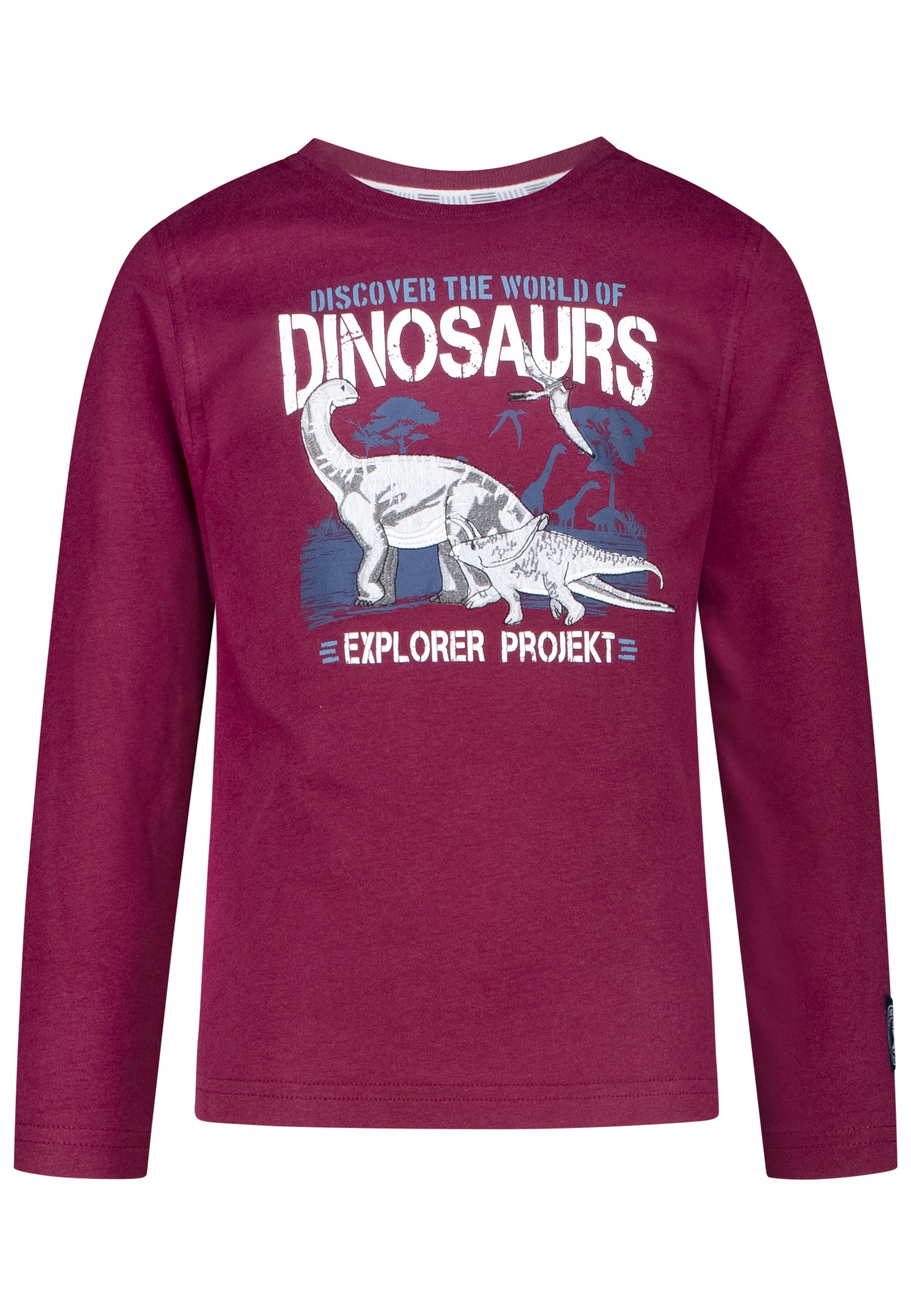 Mit großem Dinosauriermotiv auf der Brust (als Stickerei, und Print).