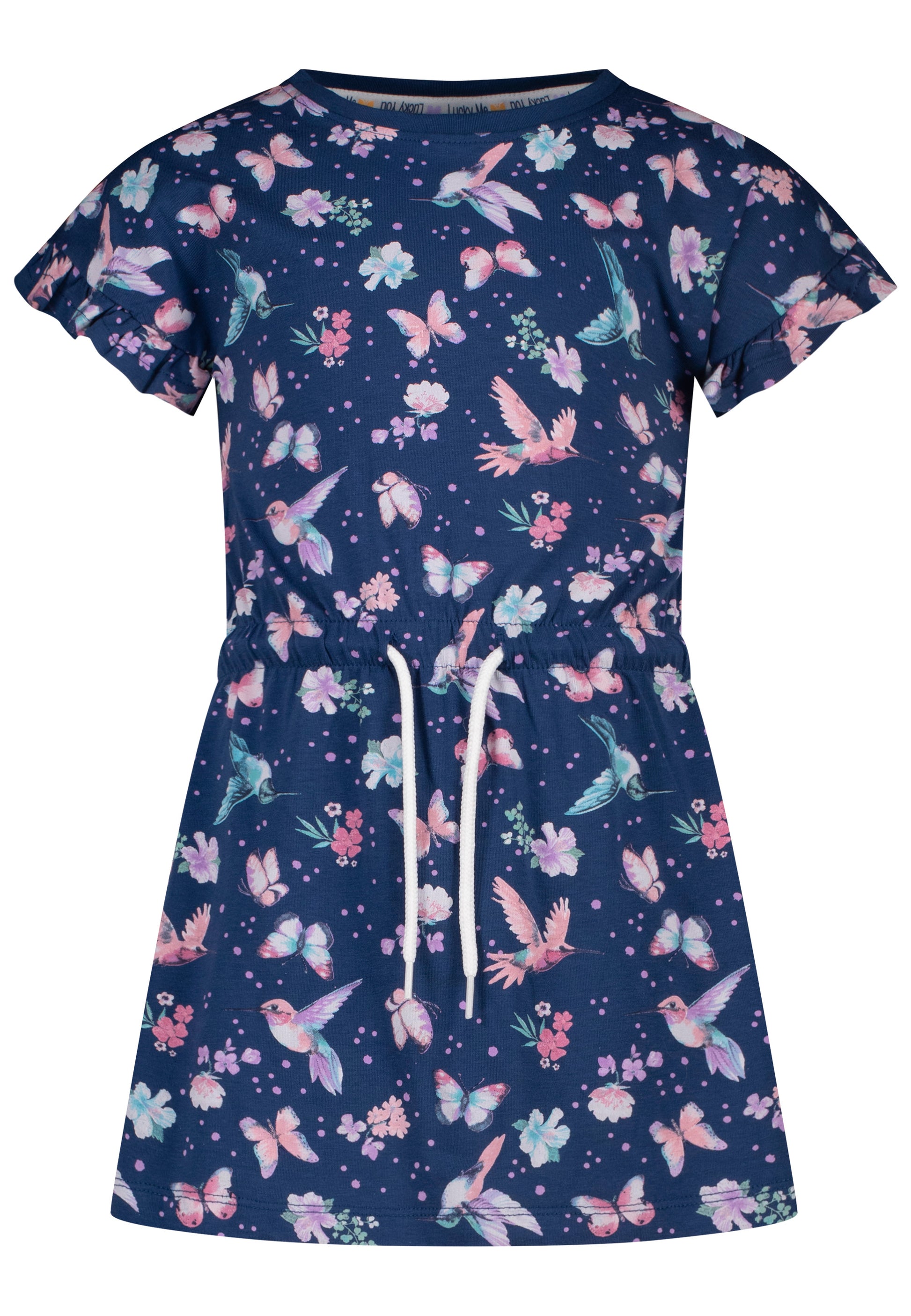 Mit Schmetterlingen, Kolibris, und Blumen als Alloverprint