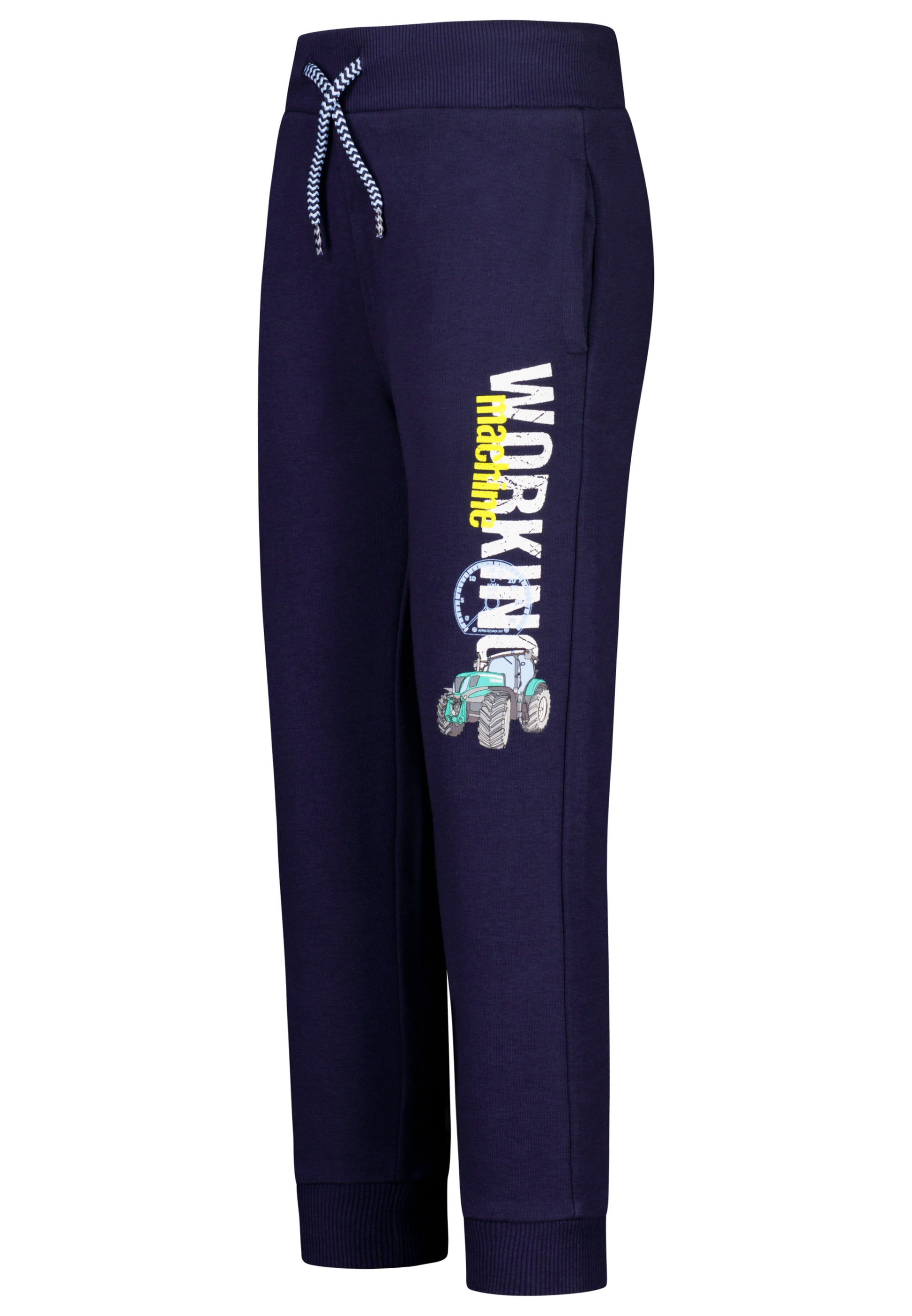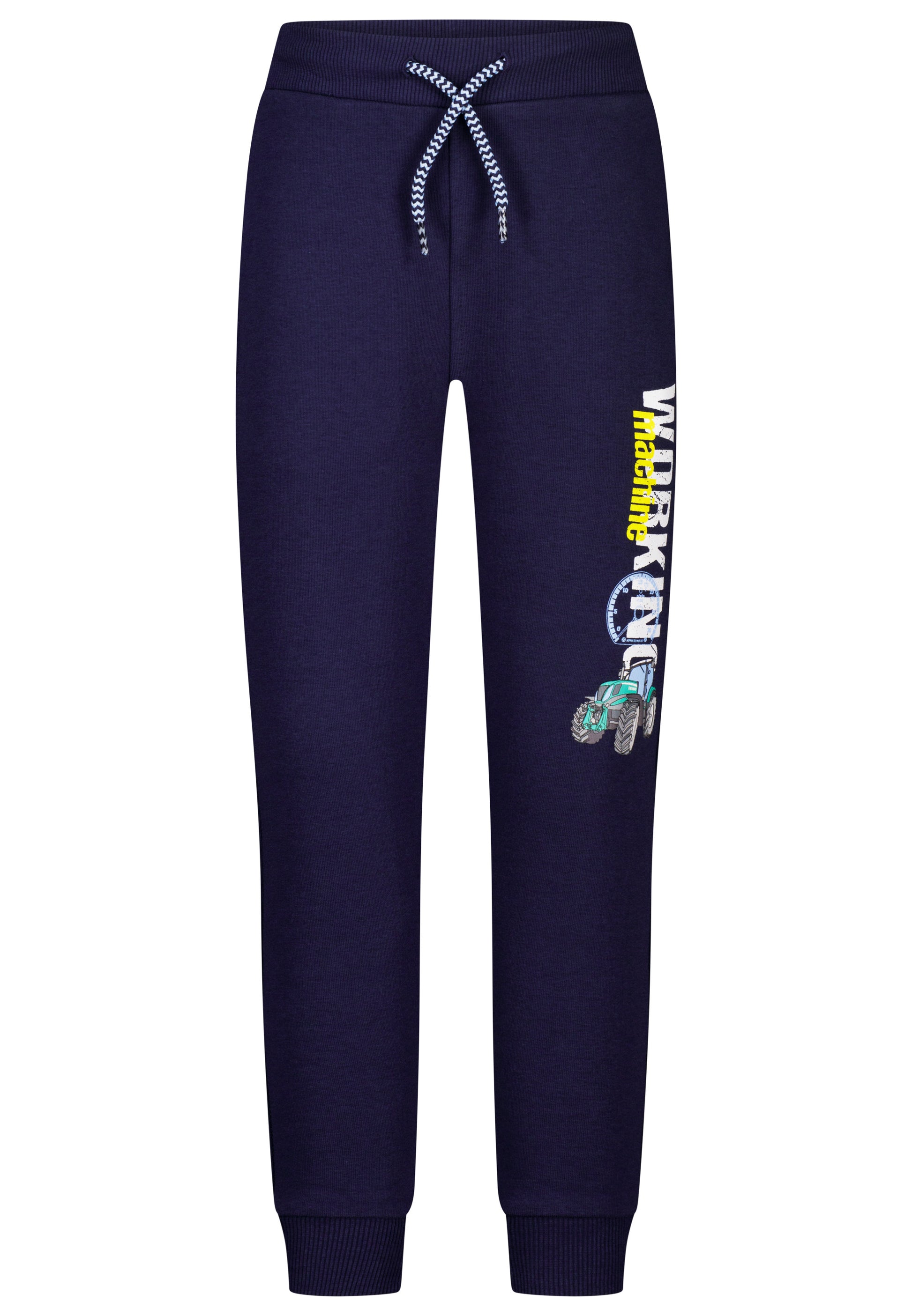 Mit großem Traktorprint auf einem Hosenbein