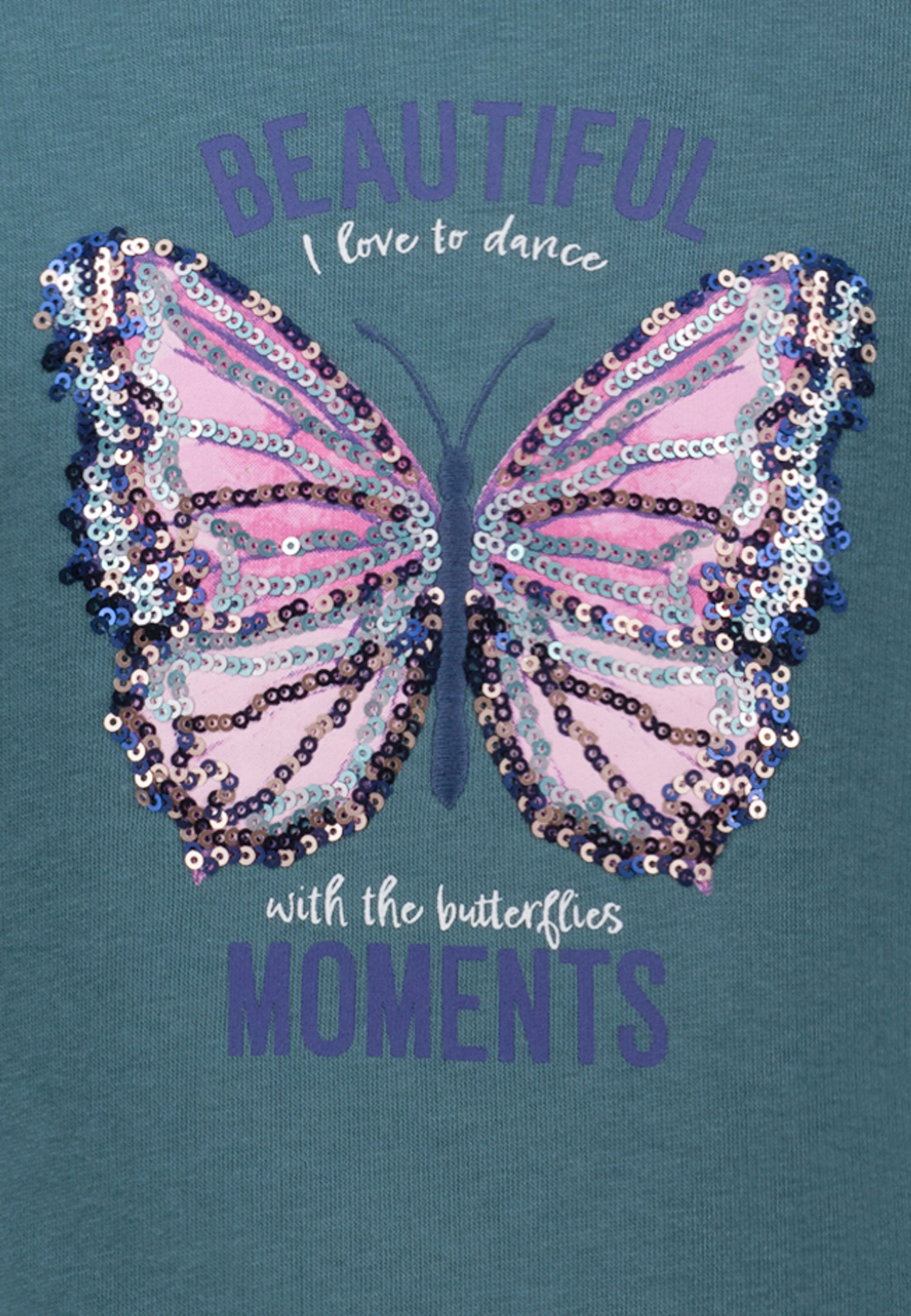 Mit Schmetterlingsprint - verziert mit vielen Pailletten!