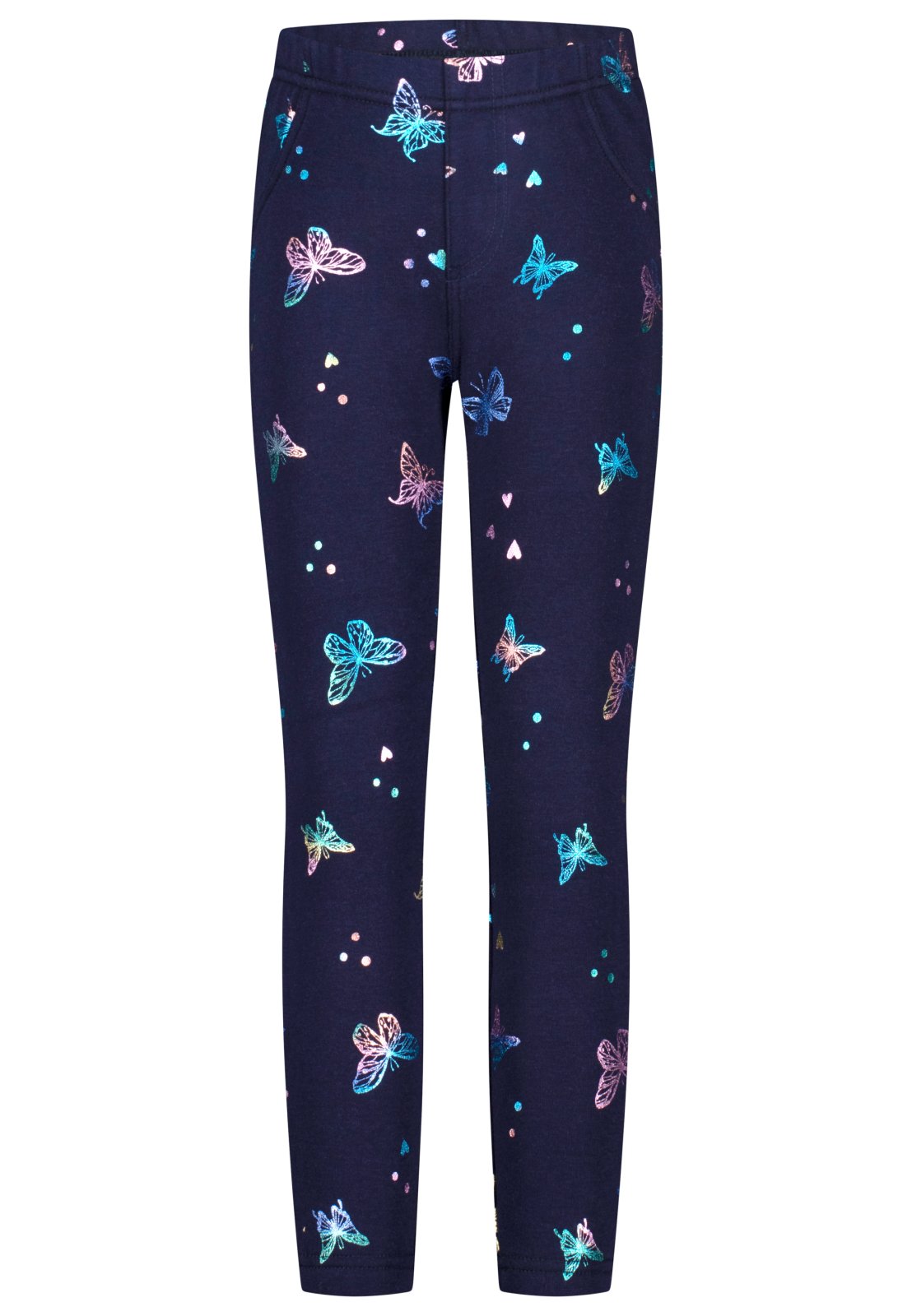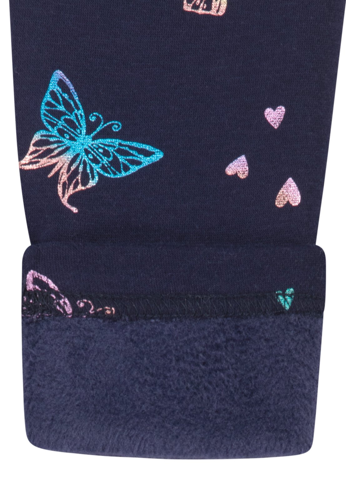 Innen ganz kuschelig weich angerauht und allover mit schimmernden Schmetterlingen als Printmotiv.